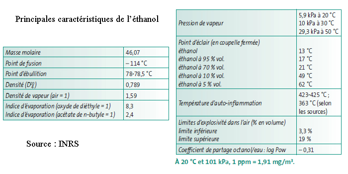 Propriétés physiques de l'éthanol et consignes de sécurité